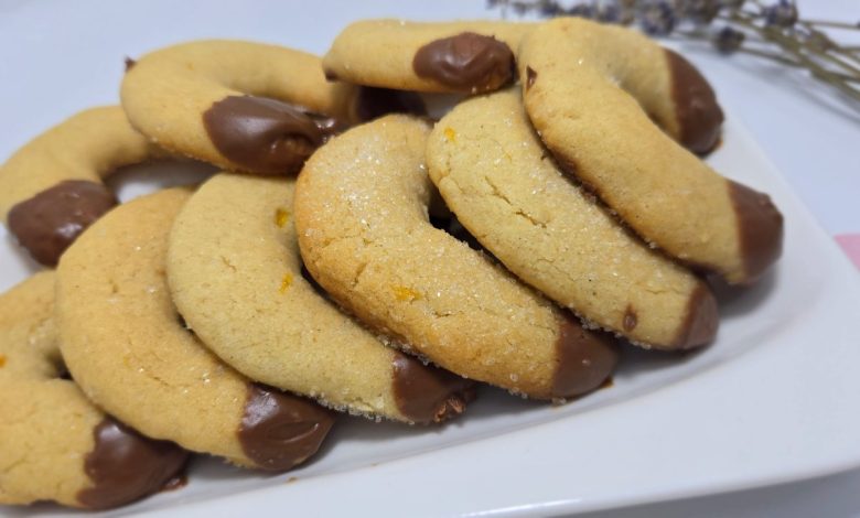 3.Formam biscuiti in forma de potcoava pe care ii punem in tava tapetata cu hartie de copt si ii coacem timp de 13-14 minute in cuptorul preincalzit la 180 de grade. Daca ii tinem prea mult la cuptor, dupa racire biscuitii se intaresc prea mult.