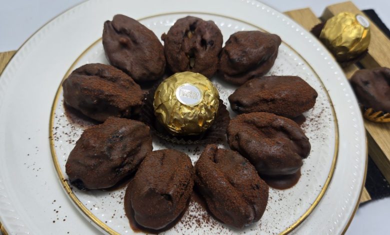 Dam prunele umplute prin ciocolata topita si le punem pe un platou tapetat cu hartie de copt.