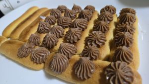 3.Trecem piscoturile prin lapte timp de 3-4 secunde pe fiecare parte si punem pe un platou.