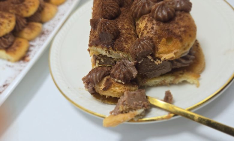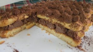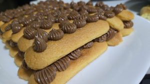 Desert cu piscoturi si crema cu ciocolata – desert la rece preparat rapid, insa extrem de bun. Nu avem nevoie de multe ingrediente, iar rezultatul este deosebit. Eu iubesc acest desert pentru ca se prepara rapid, iar ai mei sunt fani „ciocolata”. Crema aceasta de ciocolata o folosesc si la prajituri, si la torturi. Este minunata!