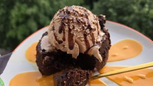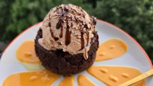- Lava cake-ul se serveste, de obicei, cald, alaturi de o cupa de inghetata.